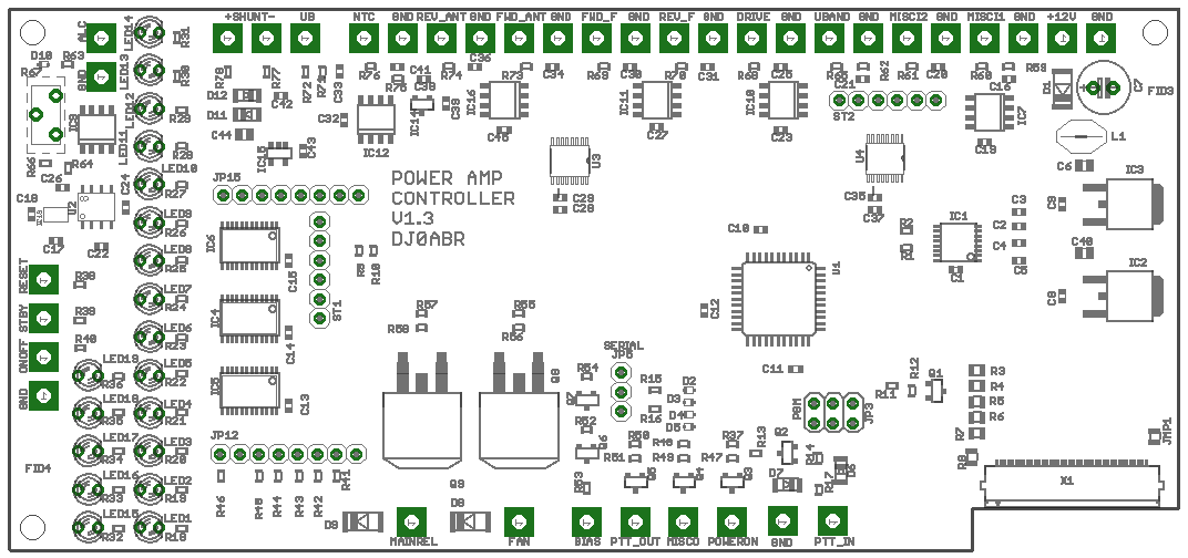 | STBY | Mit einem Schalter an der Frontplatte verbinden. Beschriften mit "Standby" und "Aktiv". (Taster gegen GND verbinden) | In Stellung Standby wird der Transceiver direkt zur Antenne durchgeschleift, die PA ist außer Betrieb. |